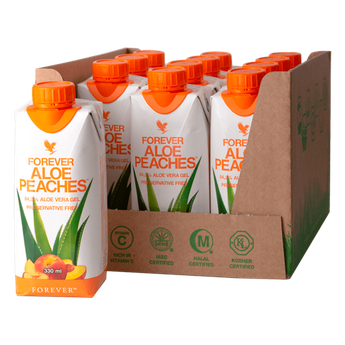 Ο Forever Aloe Peaches™ είναι ο ιδανικός τρόπος για να λαμβάνετε την ημερήσια ποσότητα αλόης. Αυτός ο χυμός περιέχει 84,3% αγνό ζελέ αλόης βέρα που συνδυάζεται με τον φυσικό πολτό ροδάκινων για την στήριξη του ανοσοποιητικού συστήματος, αλλά και την διατήρηση