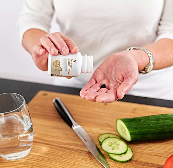 Garlic and thyme are powerful ingredients with properties that are said to promote good health. For full benefit, take one of these odourless softgels with each meal.